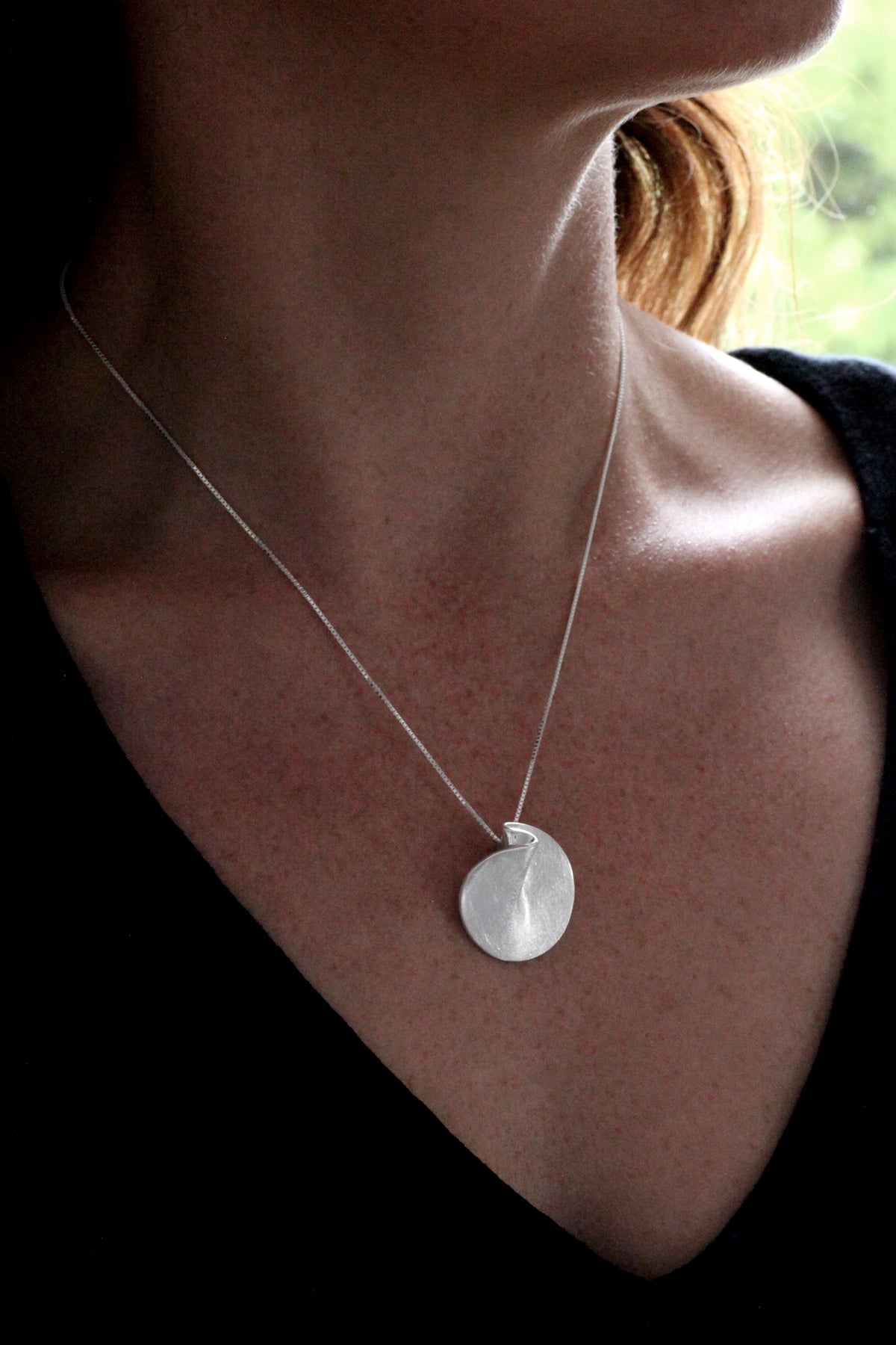 Sterling Silver Round Fold Pendant & Chain