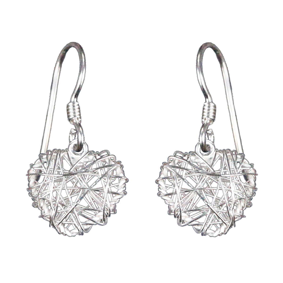 Silver Heart Nest Drop Earrings